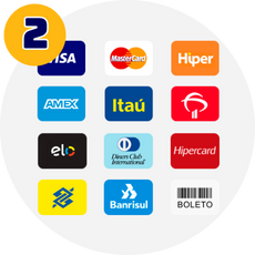 Realize o pagamento via Pix ou Cartão de crédito/débito, Boleto bancário ou Transferência.